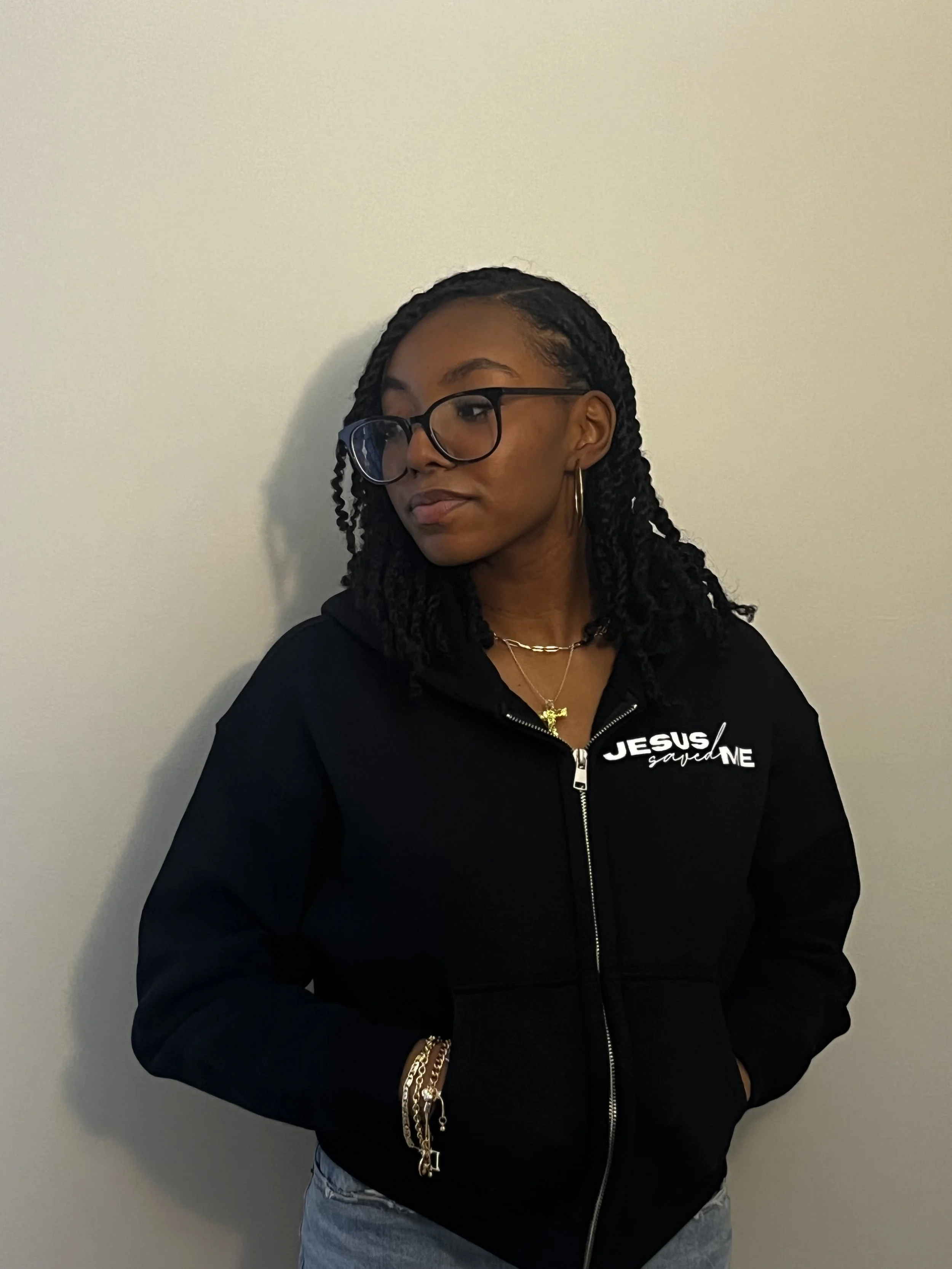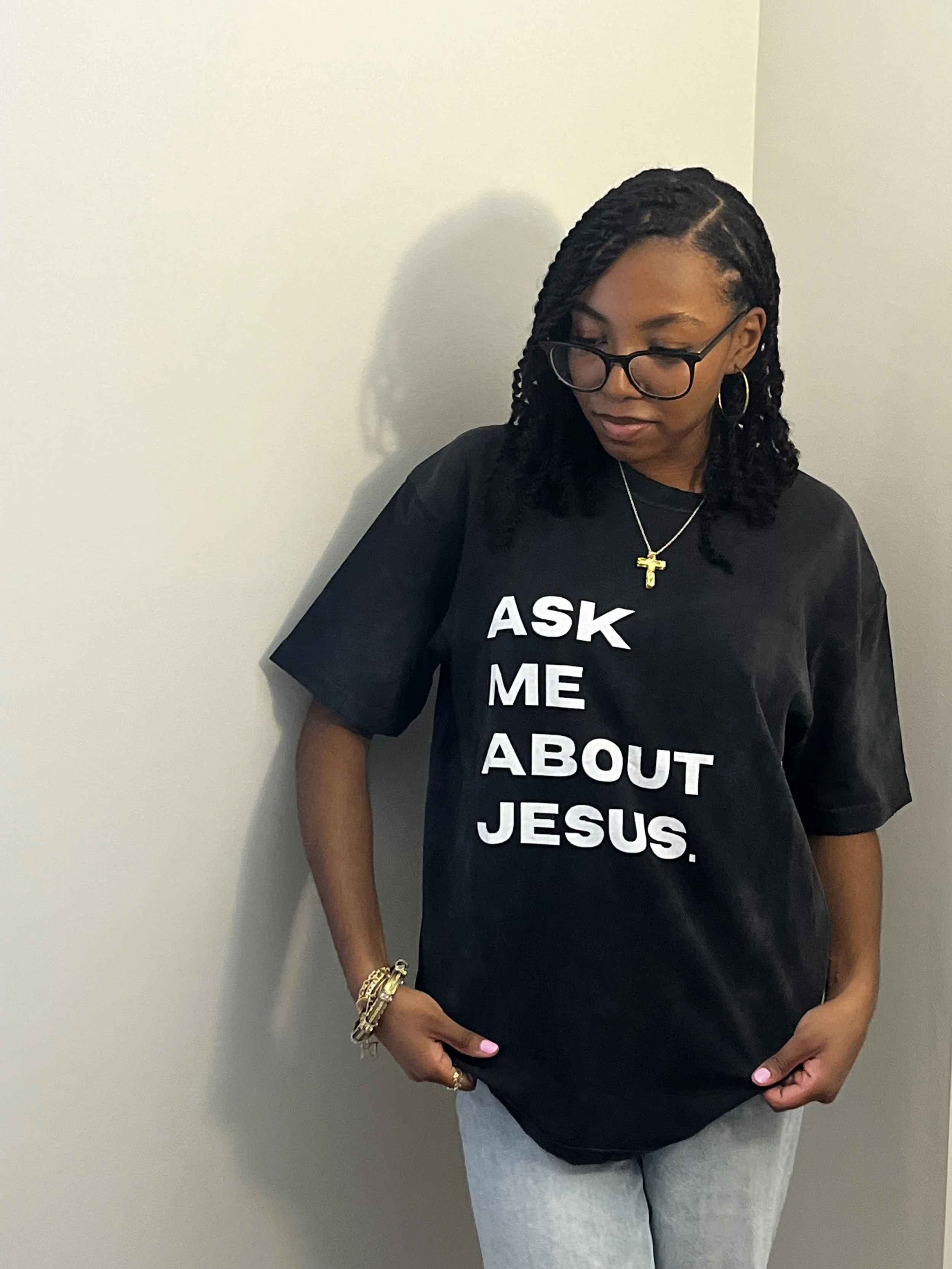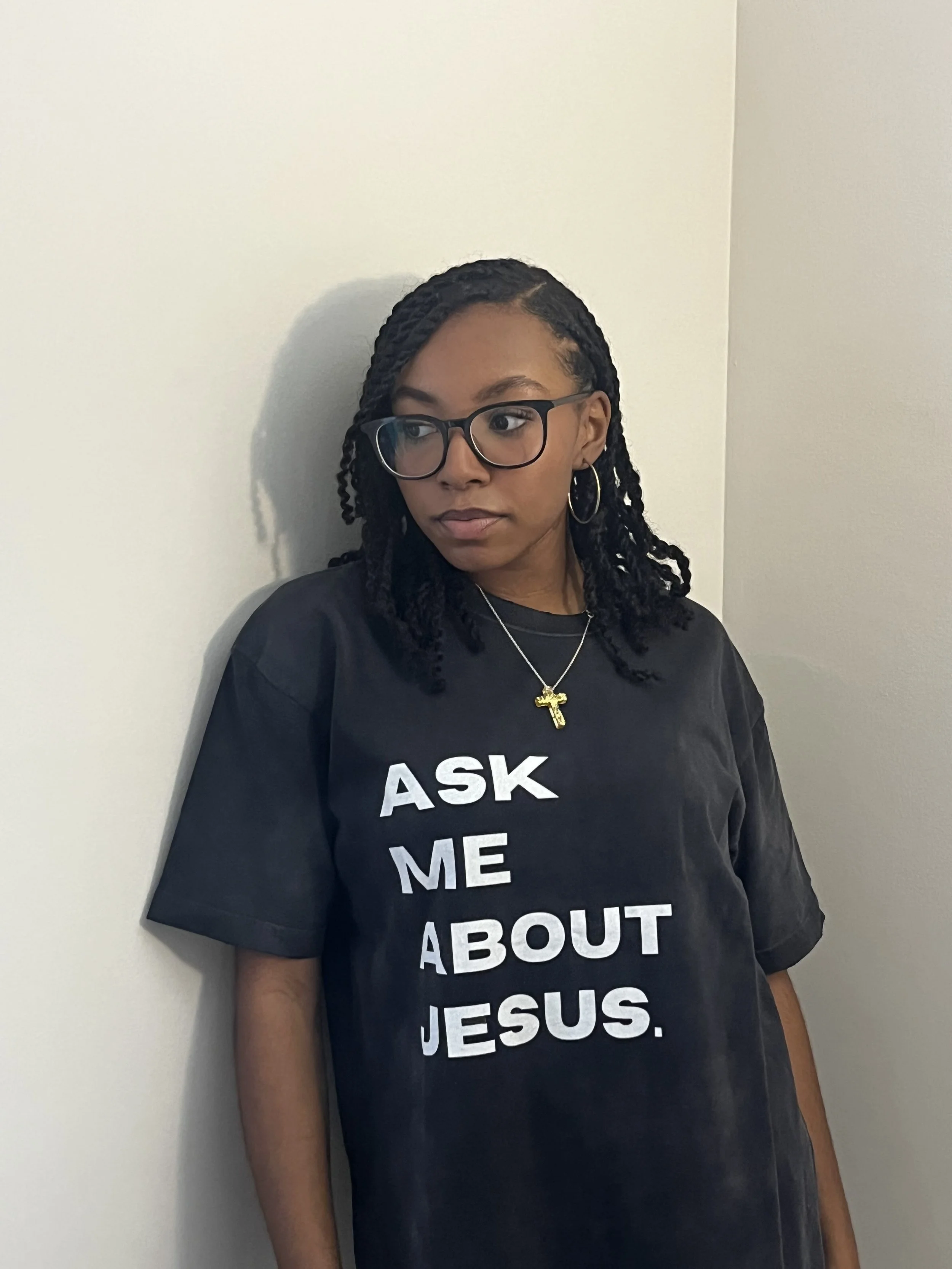 For my first collection, the idea was to make a minimalistic design that kept Jesus at the center of my collection. The black and white color block and print font reflects the simple nature of the gospel of Jesus. Accordingly, the wording on each shirt encourages those who see the piece on others to ponder on their relationship with Christ, while challenging the wearer to hold intentional conversations about Him.